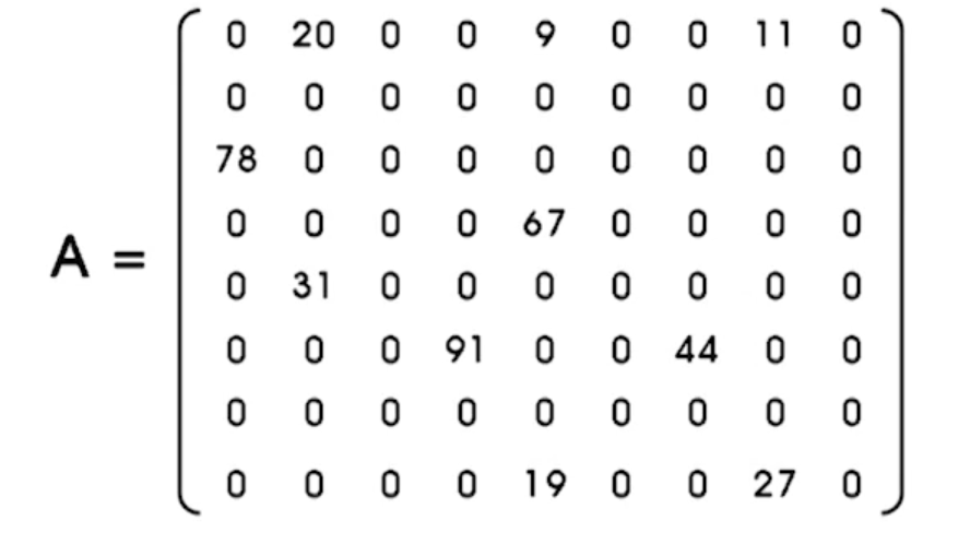 - 0인 원소는 저장하지 않고 0이 아닌 값만 따로 모아 저장