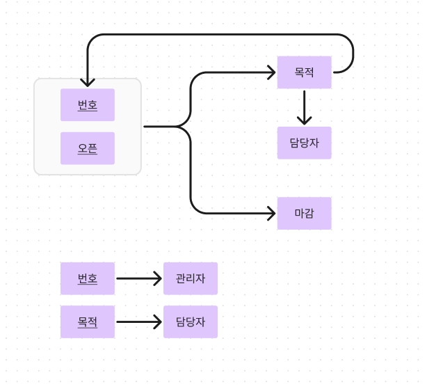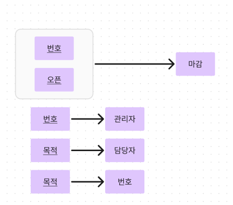 → 화살표 : 함수적 종속성