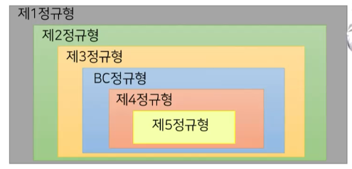 - 관계형 모델에 조건에 따라 자동 적용 되는 정규형 ( 함수적 종속성 x)