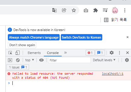 - 상단 주소 부분에 favicon 링크가 존재하지 않아 생기는 오류이다. (거슬리지 않다면 안해도 무관.)