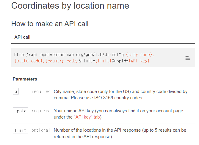 해당 홈페이지는 친절하게도 좌표가 아닌 도시 이름 및 나라 코드 등으로도 검색을 할 수 있었고,