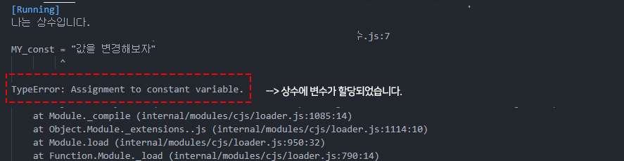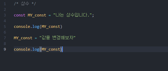 상수의 특징은 값을 선언하면 그 값을 변경 할 수가 없다.