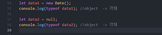 배열이나 빈 데이터 값을 오브젝트(객체) 로 인식을 하게 된다.