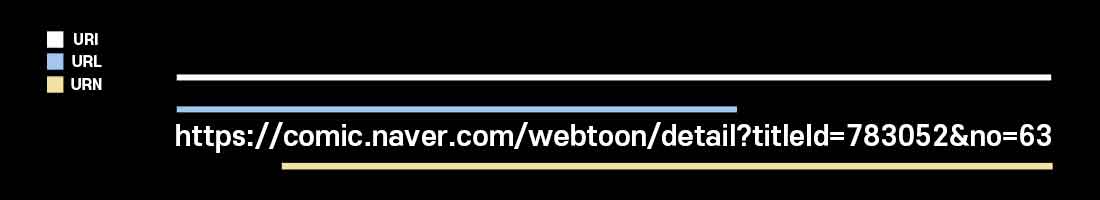 URN은 리소스를 어떻게 접근할 것인지 명시하지 않고 경로와 리소스 자체를 특정하는 것을 목표로 하는 URI 이다.